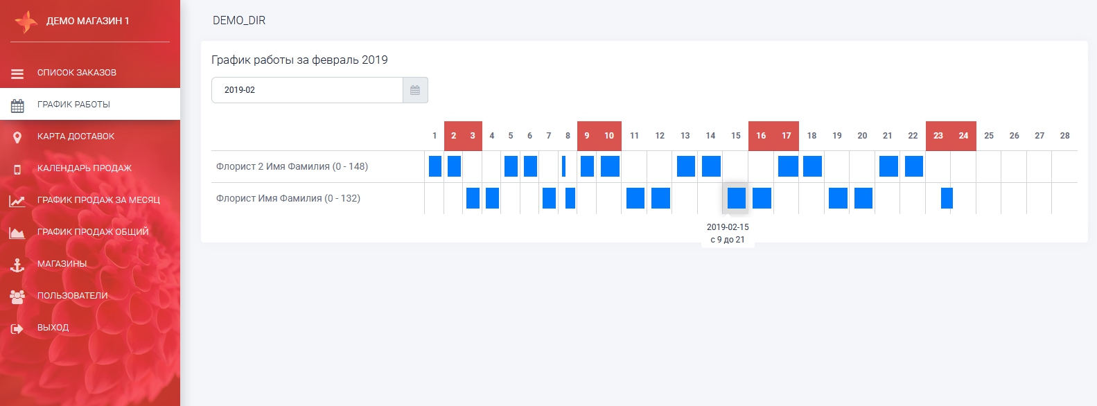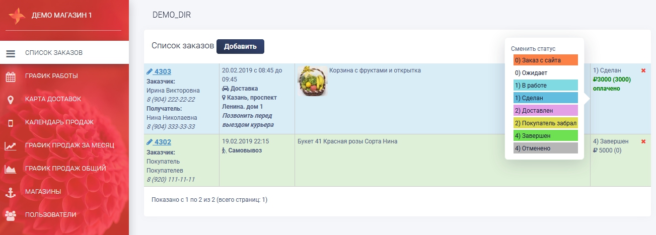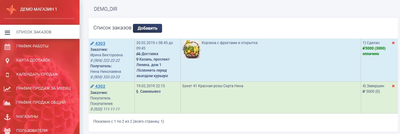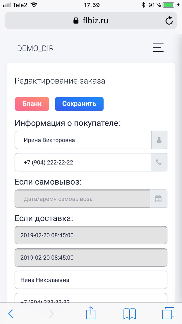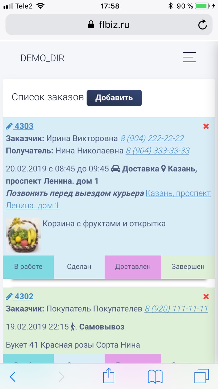 - флорист который выходит в смену следующего дня может со своего телефона с вечера просмотреть весь список заказов на завтра.