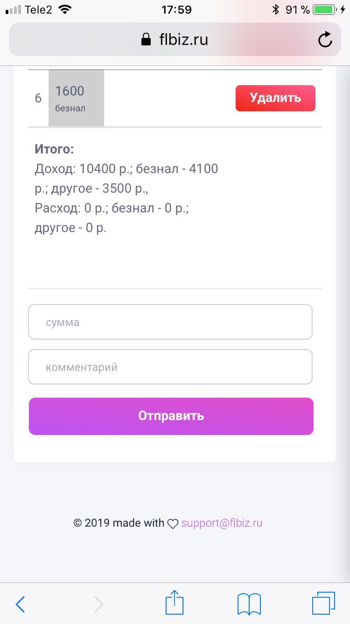 Пользователи могут добавлять продажи за конкретный день, для подсчета продаж (автоматически считается суммы по налу и безналу), при клике на сумму меняется тип платежа (нал, безнал, другое - перевод на карту и т.д.)