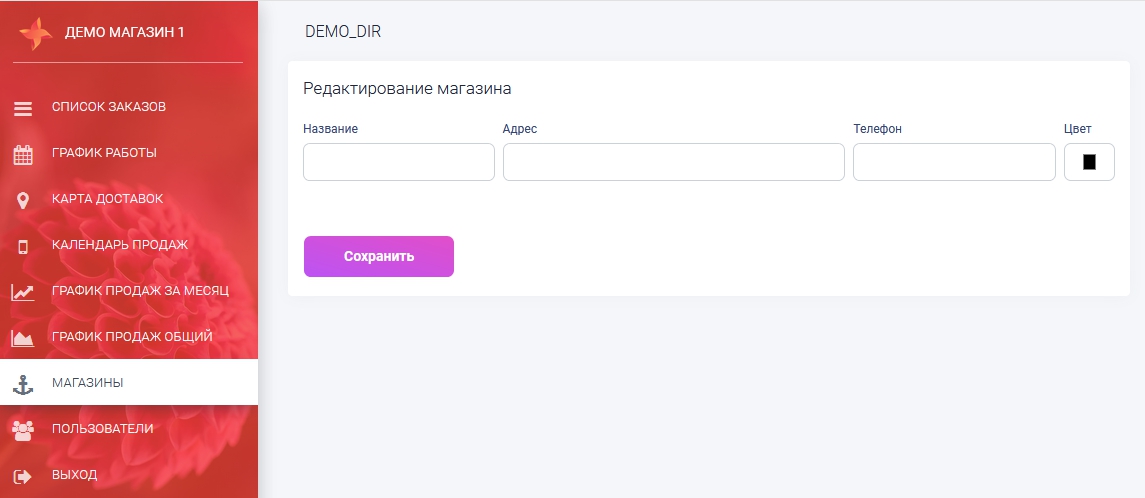 - Цвет - в некоторых местах системы этот магазин будет выделяться выбранным цветом
