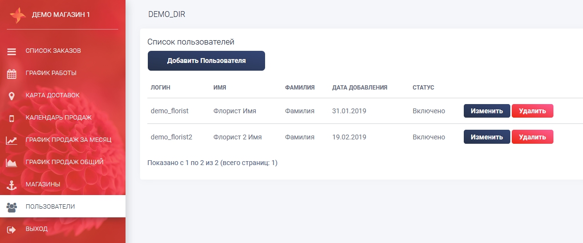 В этом разделе вы должны добавить пользователей, флористов, администраторов, чтобы выдать им личные аккаунты,